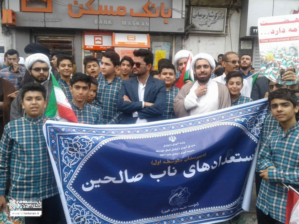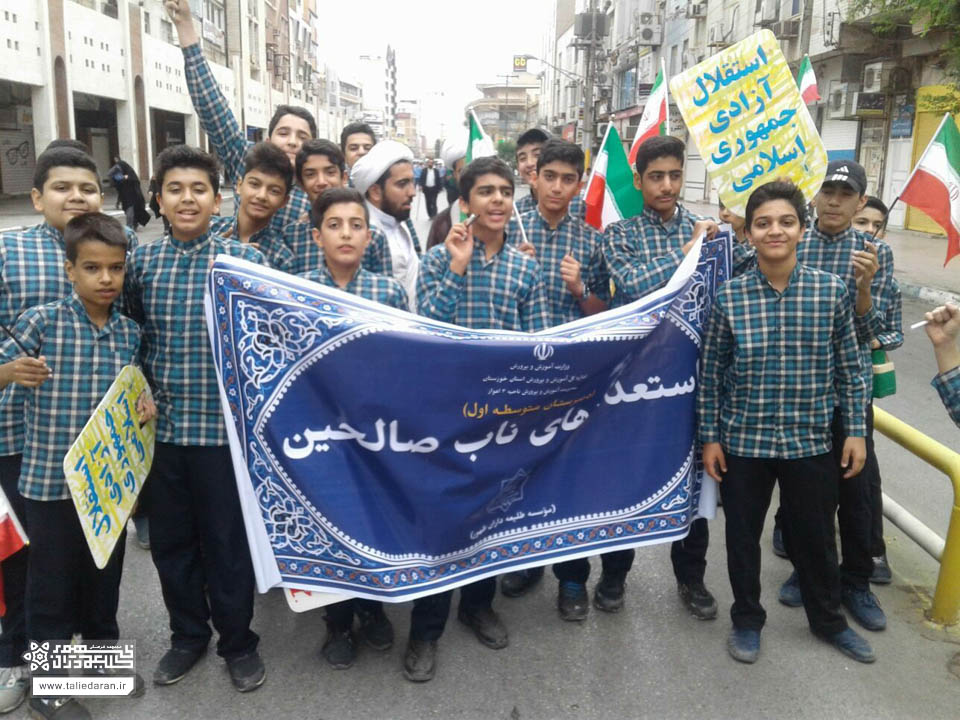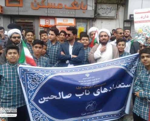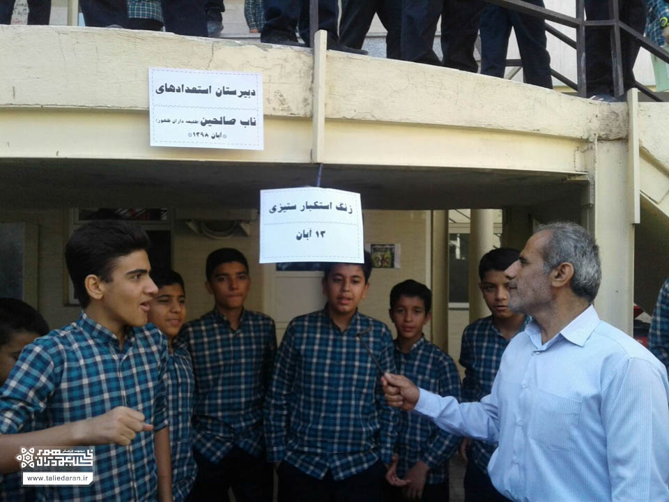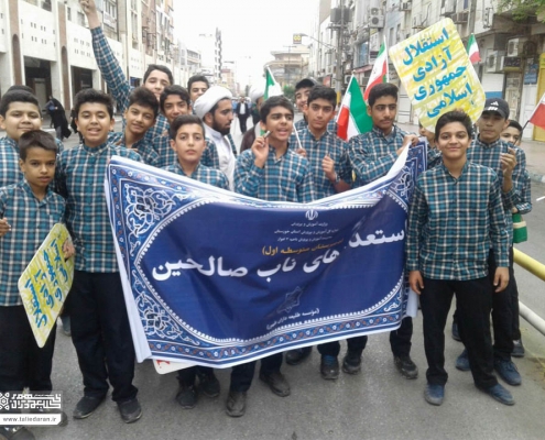 دانش آموزان دبیرستان پسرانه استعدادهای ناب صالحین نیز پس از اجرای مراسم روز دانش آموز ، به همراه کادر مدرسه در اجتماع همگانی دانش آموزان شرکت کرده و شعارهایی در محکومیت آمریکا و اسراییل و انگلیس سر دادند.